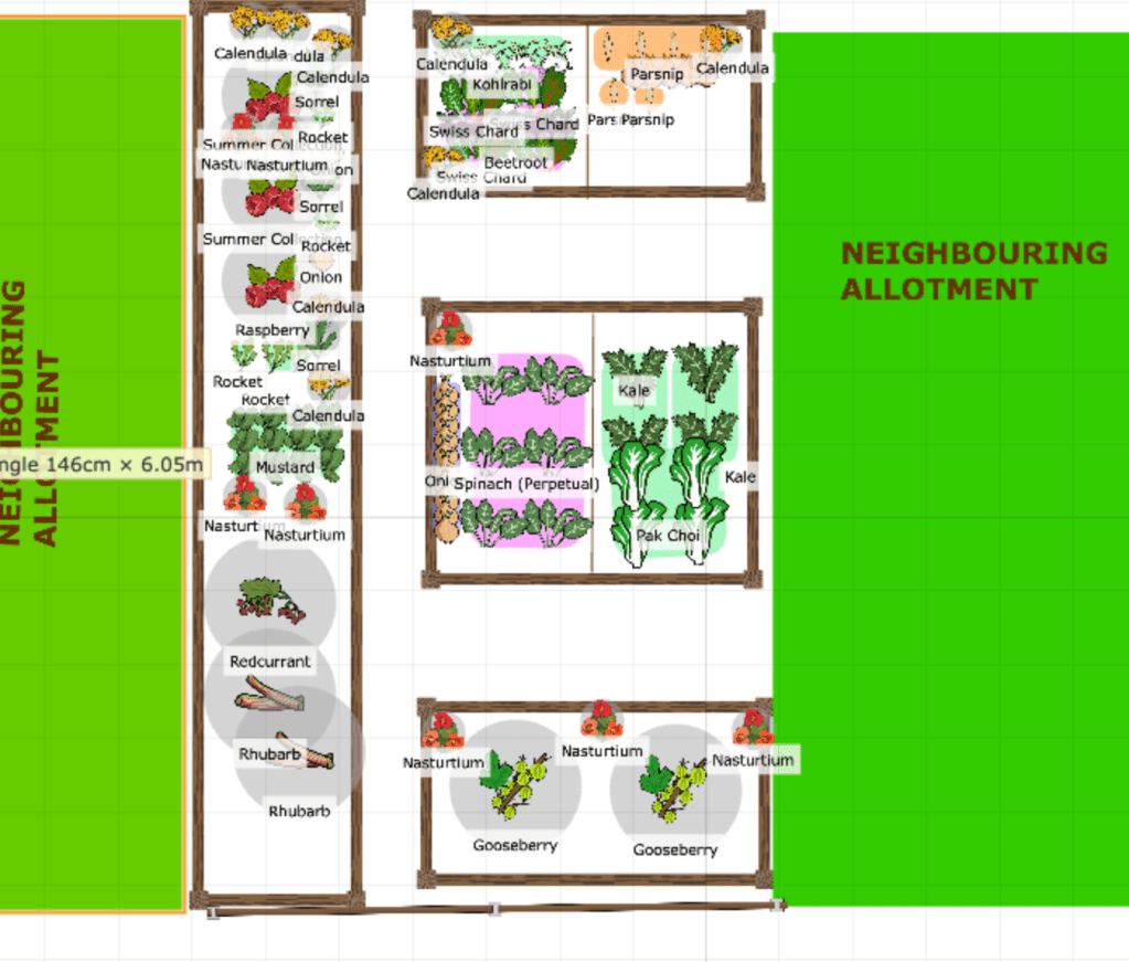 Looking at what we want to grow, I want to think through each one with relation to companion planting and also with regard to the zones being our two allotments and home growing spaces.